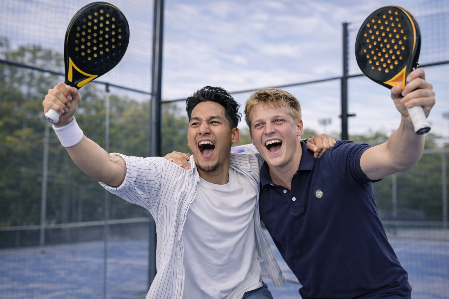 Gelukkig bleef het bij deze incidenten en herpakte de wedstrijd zich snel, met sportief en kwalitatief goed padel. Dankzij deze overwinning nemen Amir en Stef nu de koppositie in.